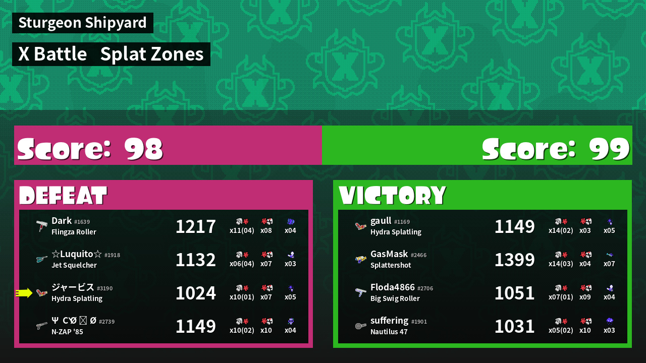 | Mode | Splat Zones - X Battle | ||