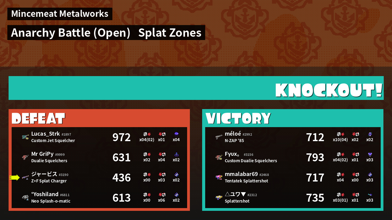 | Mode | Splat Zones - Anarchy Battle (Open) | ||