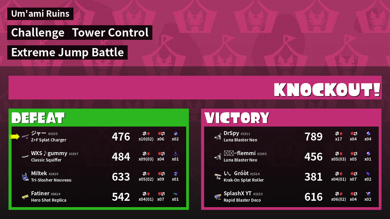 | Medals | #1 Overall Splatter #1 Score Booster Record-Score Setter | ||
