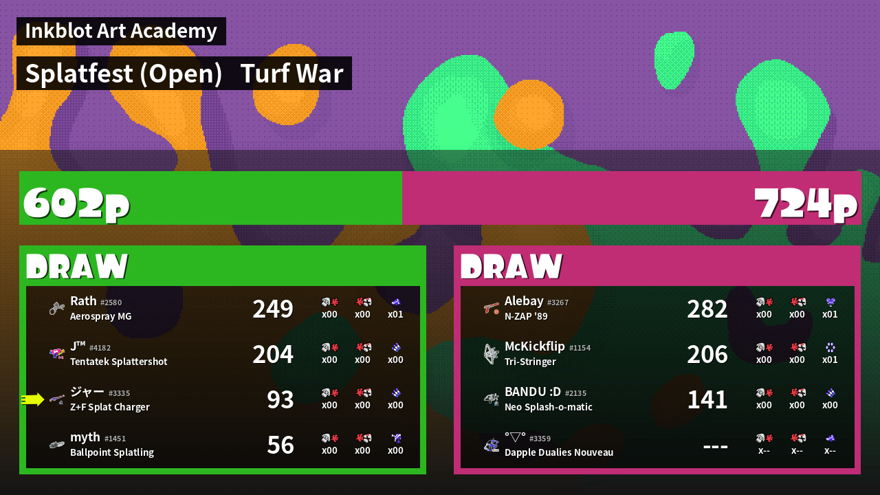 | Weapon | Z+F Splat Charger ( Splash Wall / Triple Inkstrike) | ||