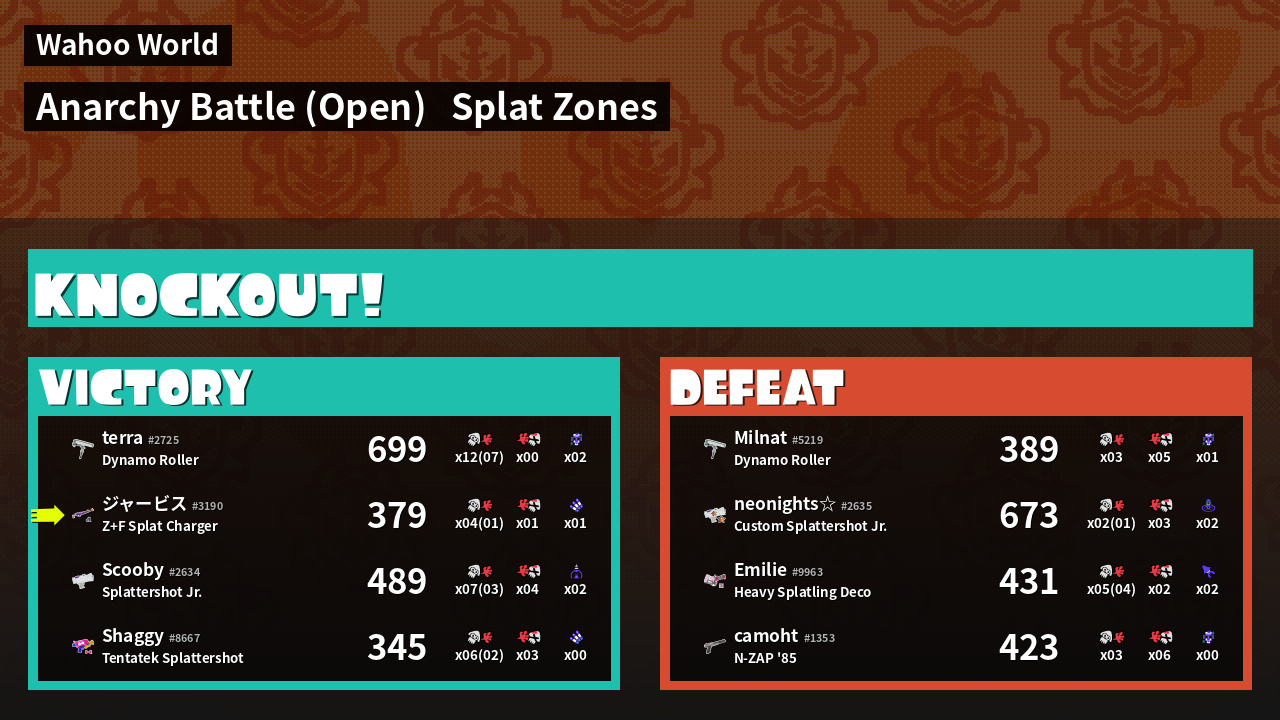 | Mode | Splat Zones - Anarchy Battle (Open) | ||