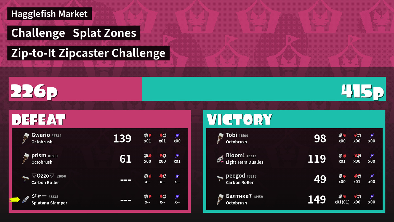 | Weapon | Splatana Stamper ( Burst Bomb / Zipcaster) | ||