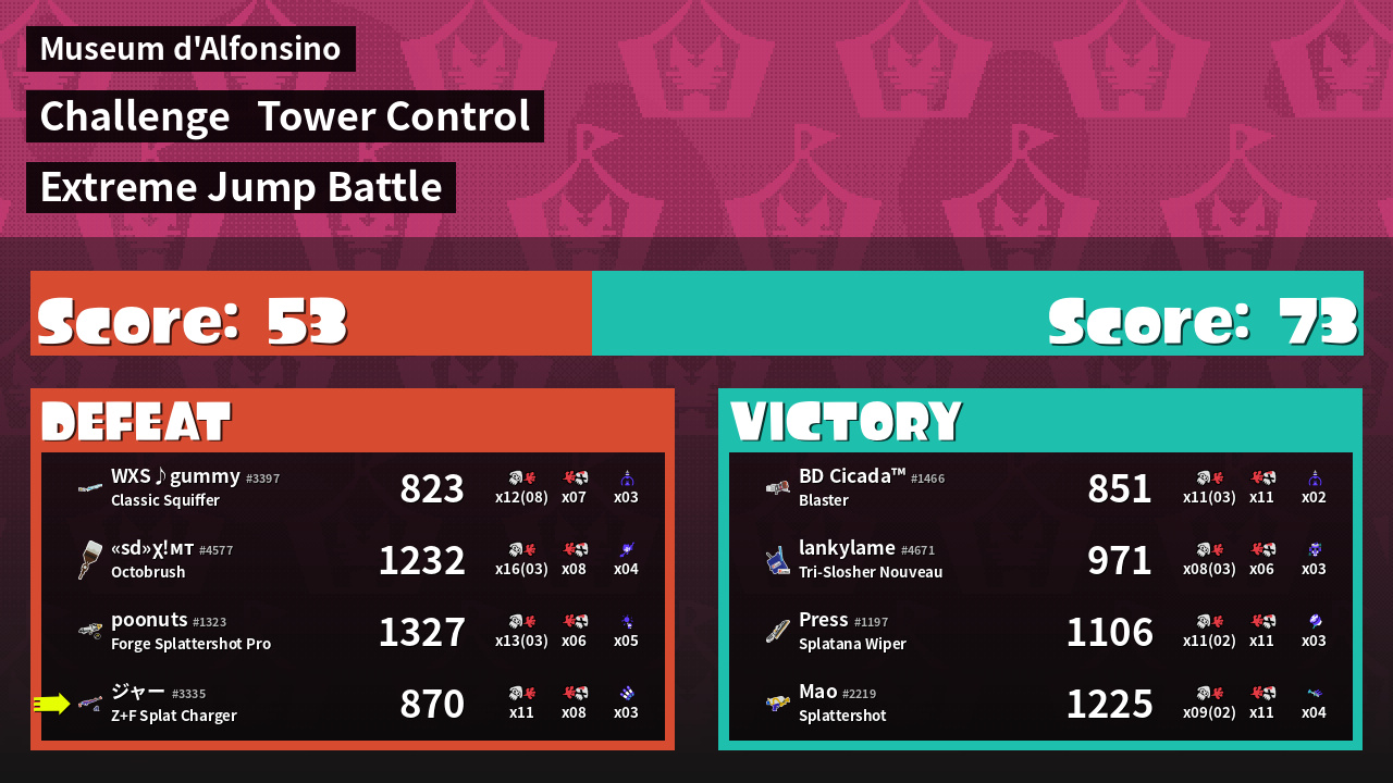 | Weapon | Z+F Splat Charger ( Splash Wall / Triple Inkstrike) | ||