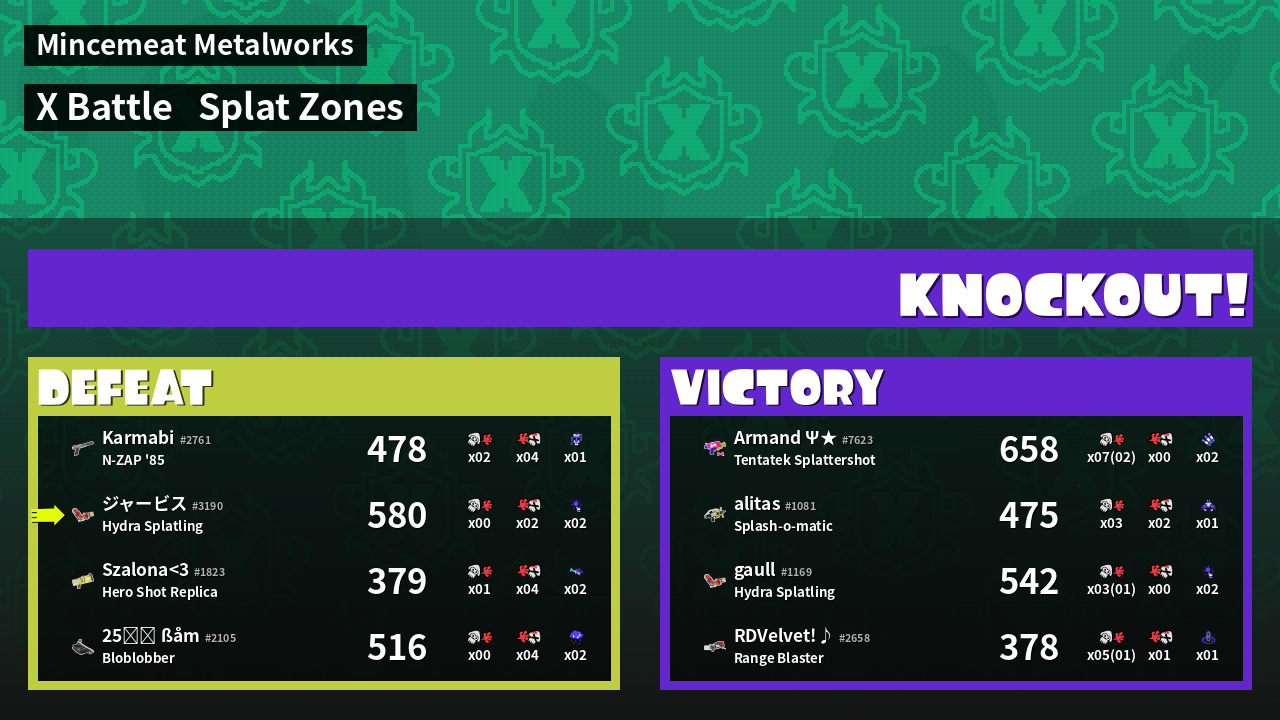| Mode | Splat Zones - X Battle | ||