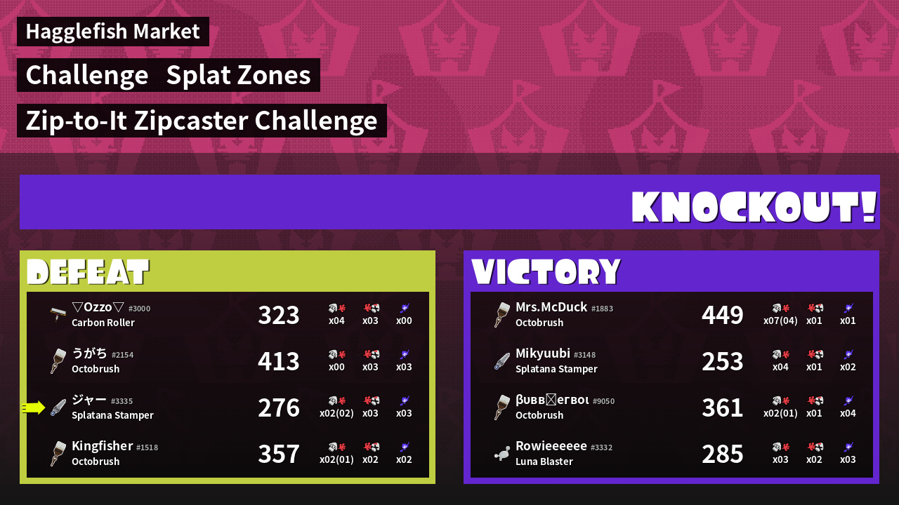 | Medals | #1 Splat Assister #1 Ground Traveler #2 Overall Splatter | ||
