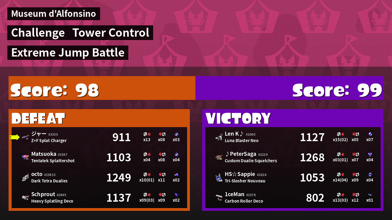 | Medals | #1 Overall Splatter Record-Score Setter #1 Super Jump Spot | ||