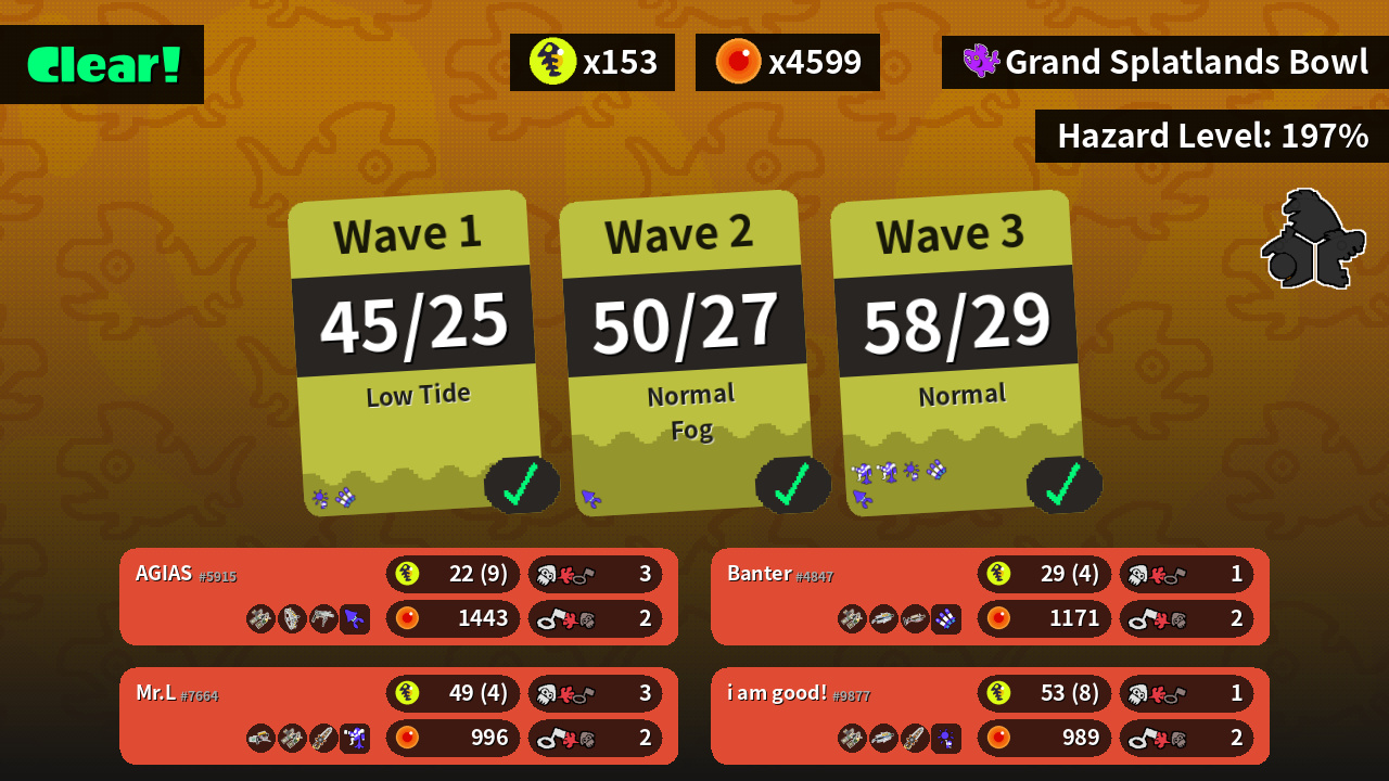| Weapons | Grizzco Dualies Grizzco Stringer Grizzco Roller | Grizzco Dualies Grizzco Brella Grizzco Splatana | Grizzco Blaster Grizzco Dualies Grizzco Splatana | Grizzco Dualies Grizzco Brella Grizzco Charger |