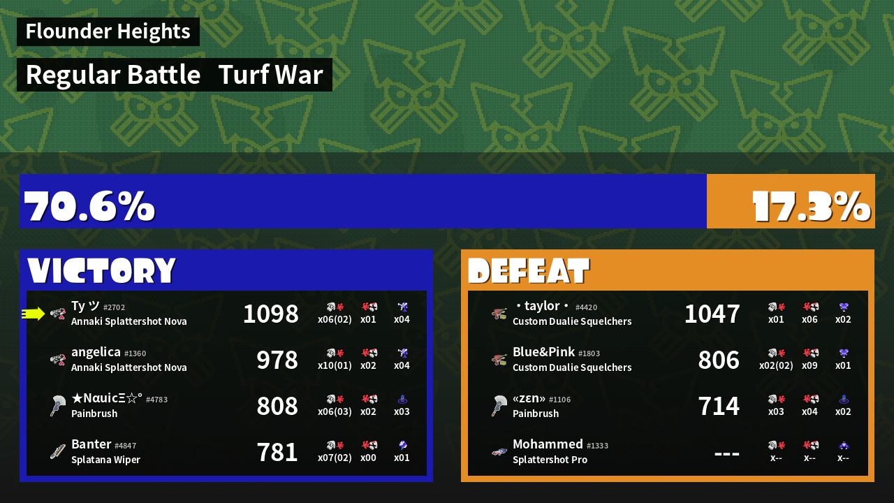 Results of ッ's Battle