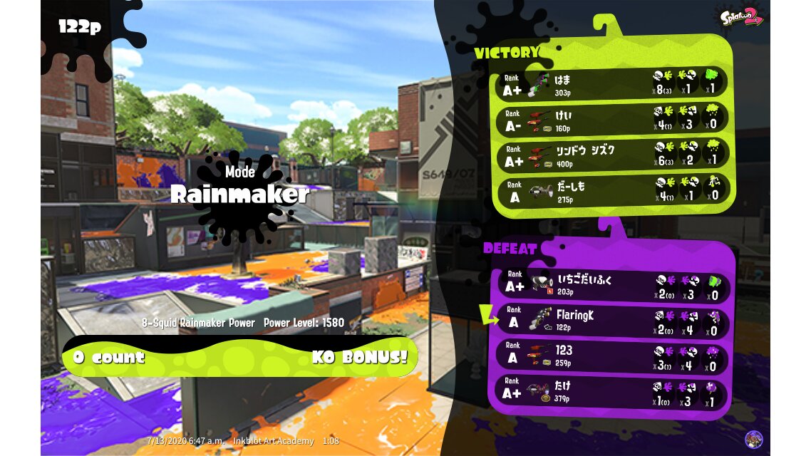 | Name | Weapon | Level | Rank | Inked | k+a/sp | k/d |