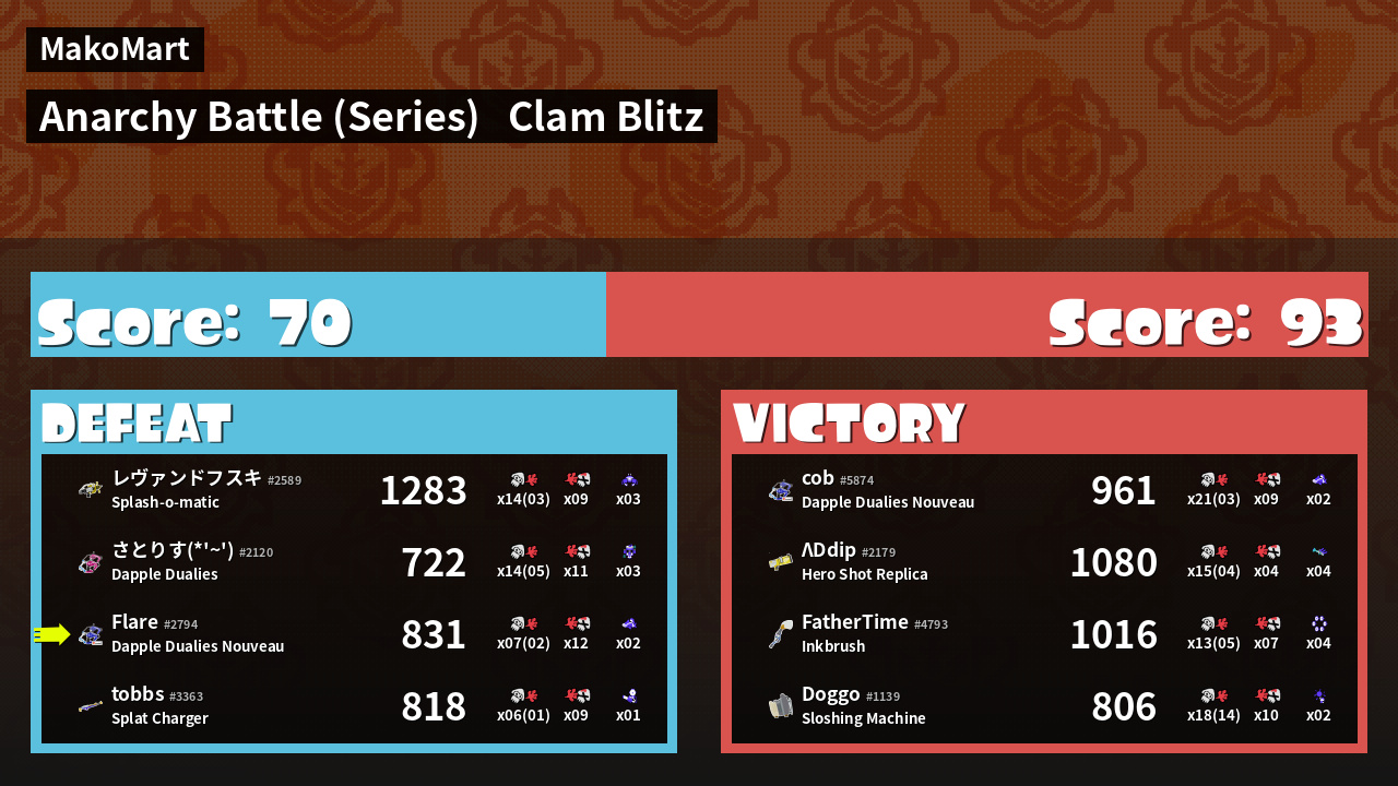 | Mode | Clam Blitz - Anarchy Battle (Series) | ||