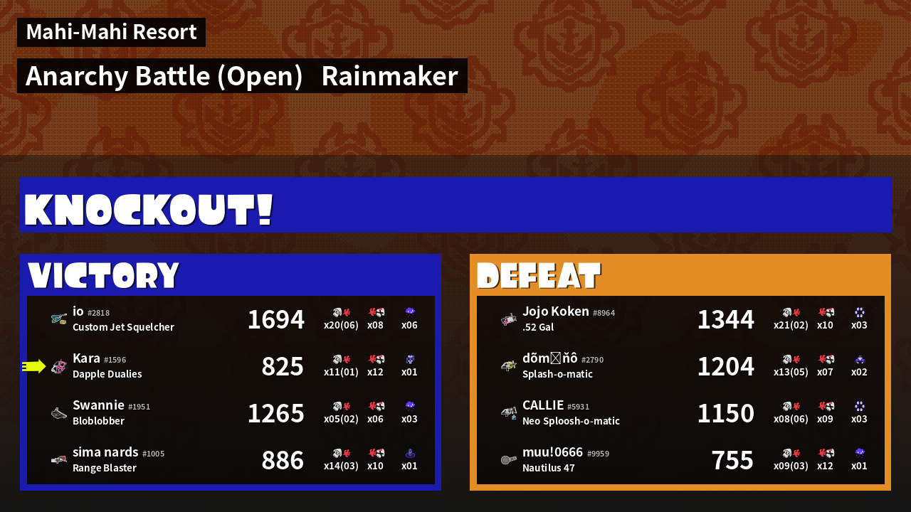 | Mode | Rainmaker - Anarchy Battle (Open) | ||