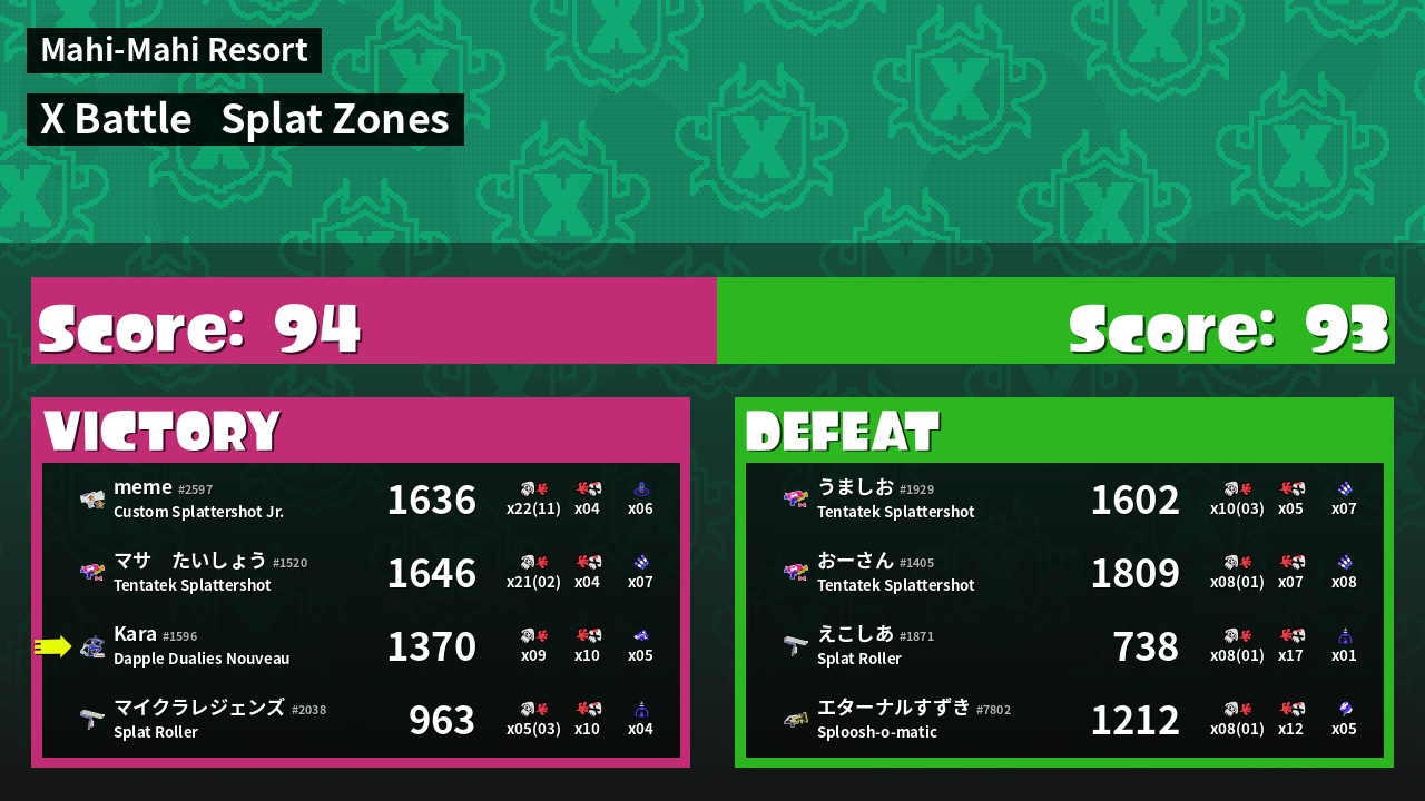 | Mode | Splat Zones - X Battle | ||