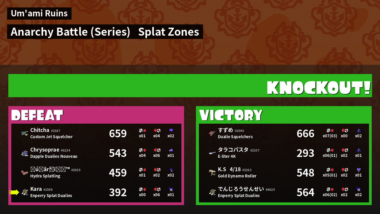 | Mode | Splat Zones - Anarchy Battle (Series) | ||