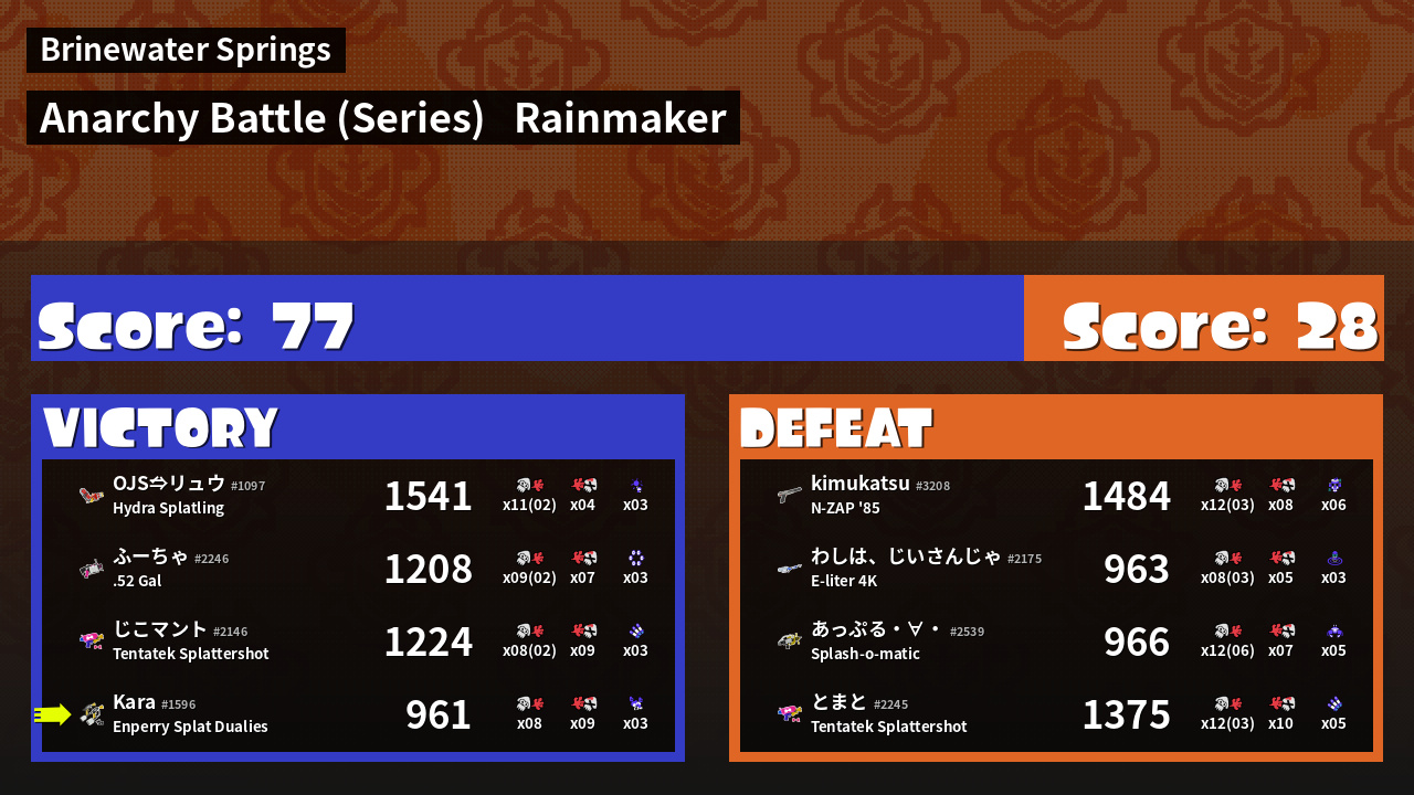 | Weapon | Enperry Splat Dualies ( Curling Bomb / Triple Splashdown) | ||