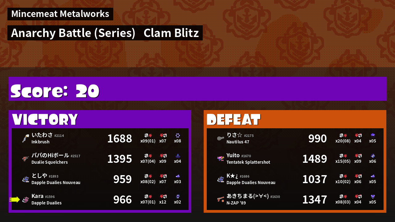 | Mode | Clam Blitz - Anarchy Battle (Series) | ||