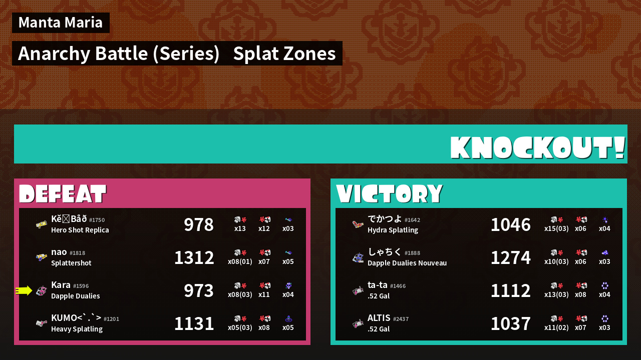 | Mode | Splat Zones - Anarchy Battle (Series) | ||