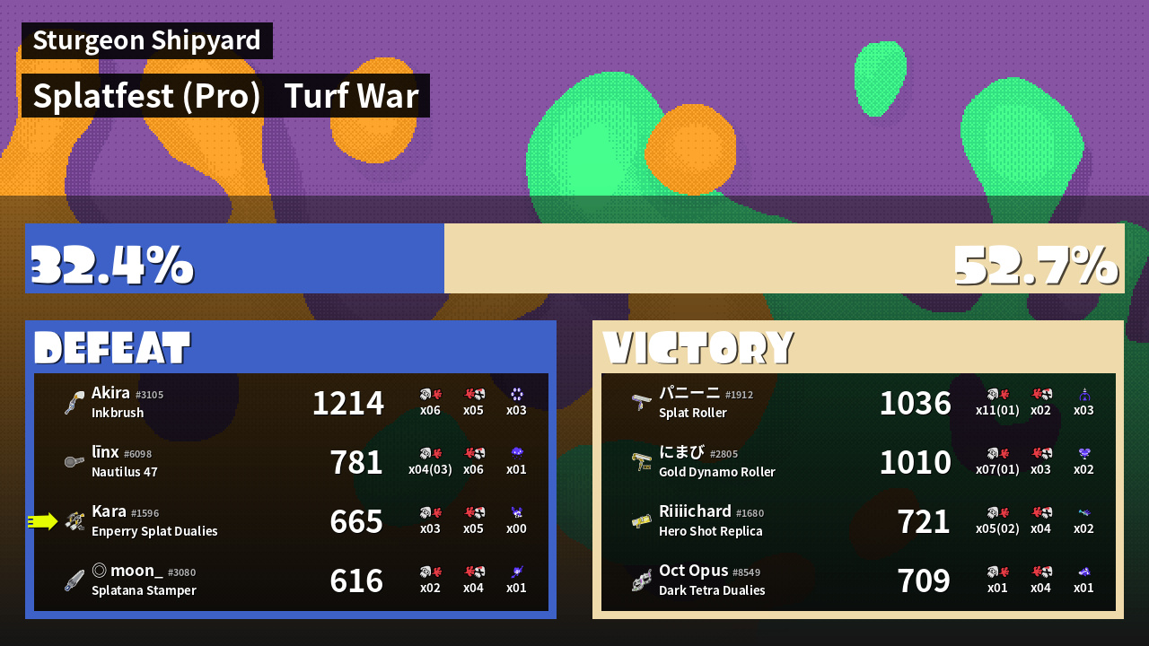 | Weapon | Enperry Splat Dualies ( Curling Bomb / Triple Splashdown) | ||