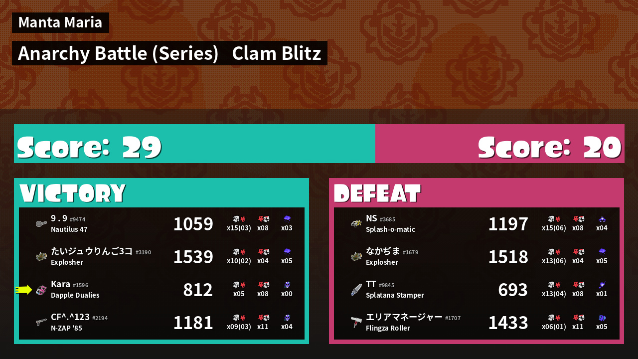 | Mode | Clam Blitz - Anarchy Battle (Series) | ||