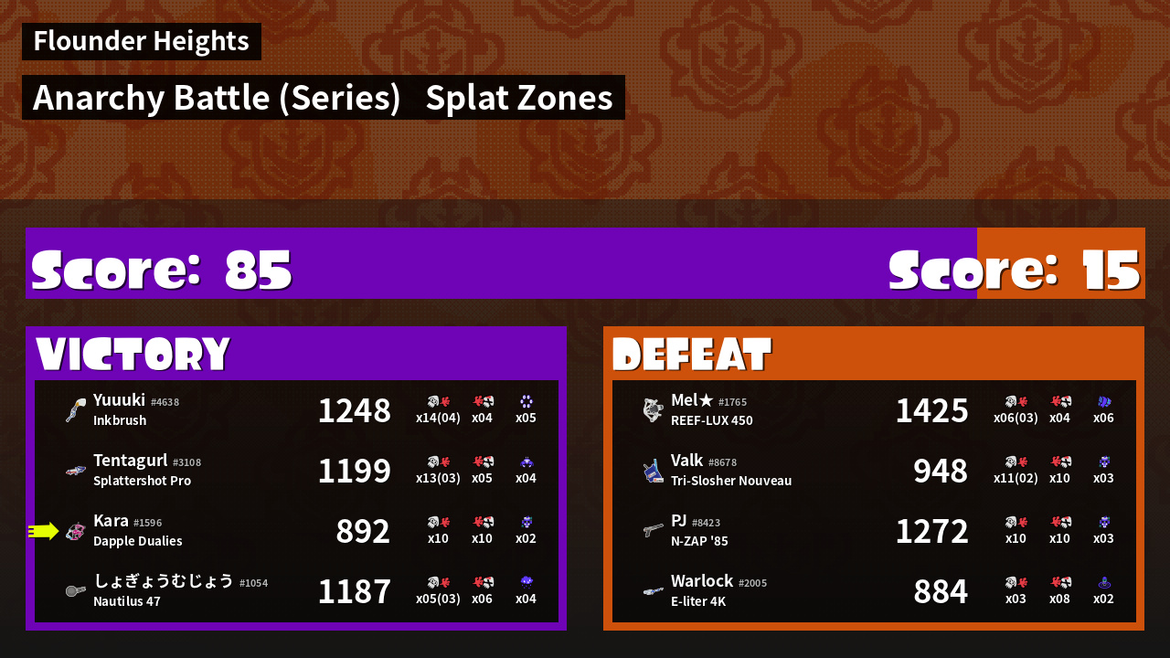 | Mode | Splat Zones - Anarchy Battle (Series) | ||