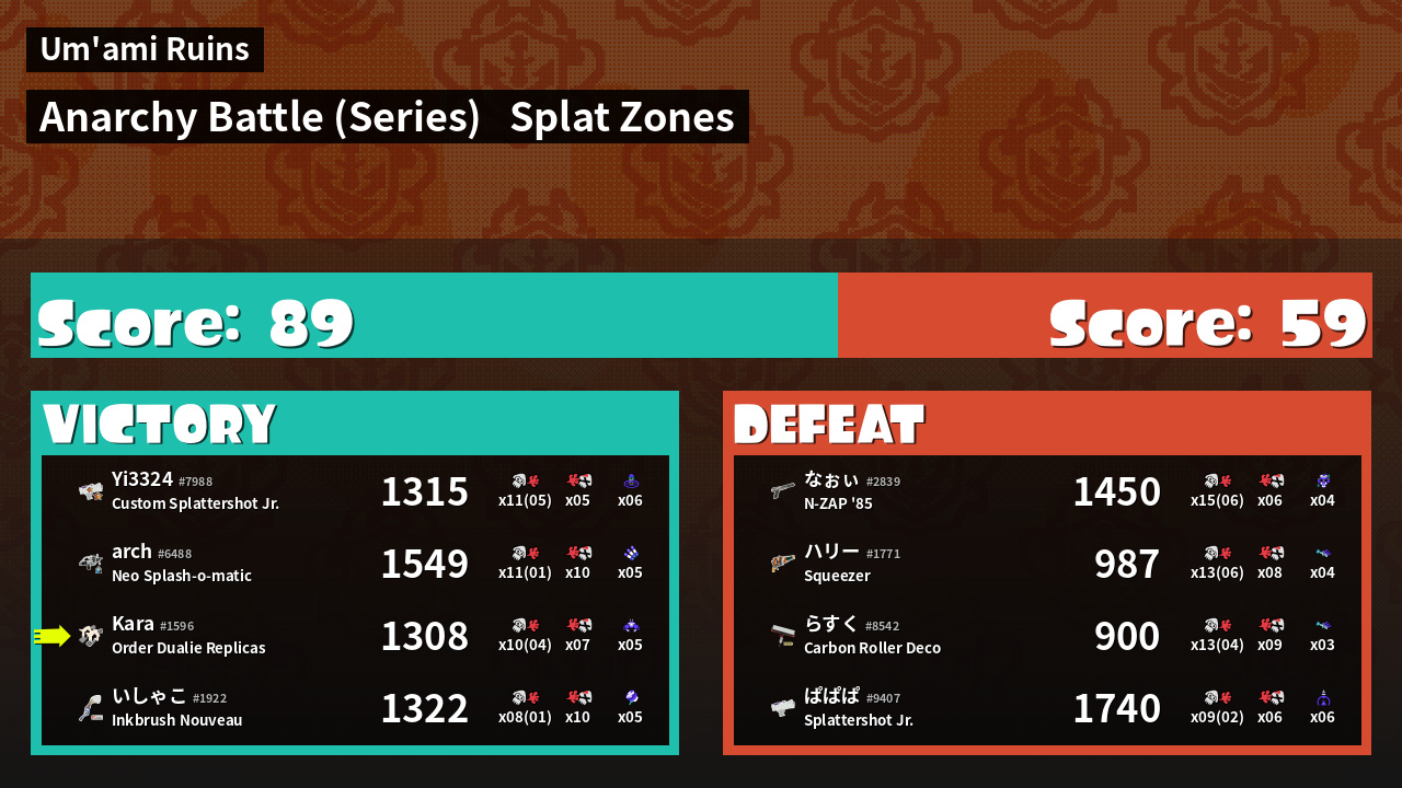 | Mode | Splat Zones - Anarchy Battle (Series) | ||