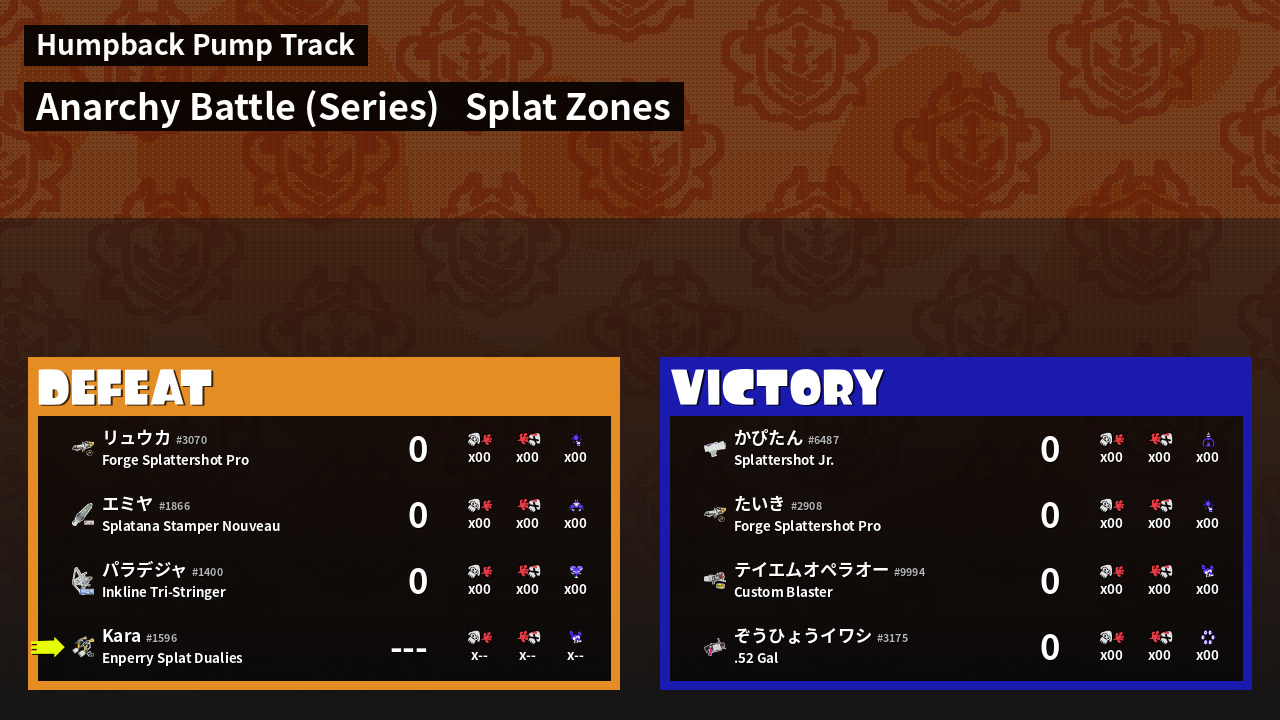 | Mode | Splat Zones - Anarchy Battle (Series) | ||