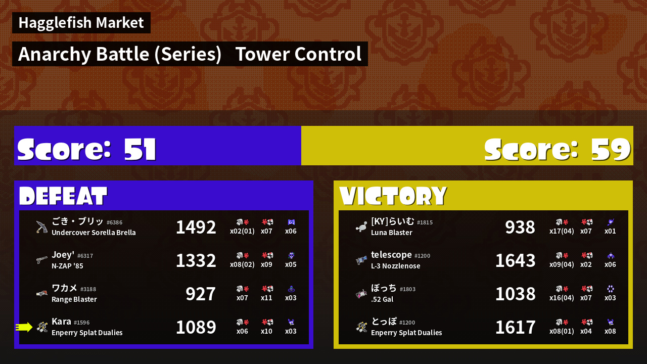 | Weapon | Enperry Splat Dualies ( Curling Bomb / Triple Splashdown) | ||