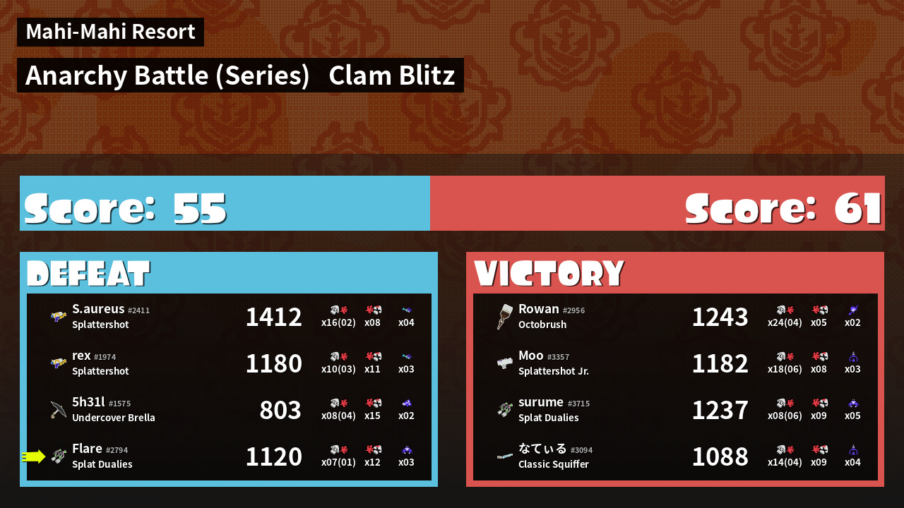 | Mode | Clam Blitz - Anarchy Battle (Series) | ||