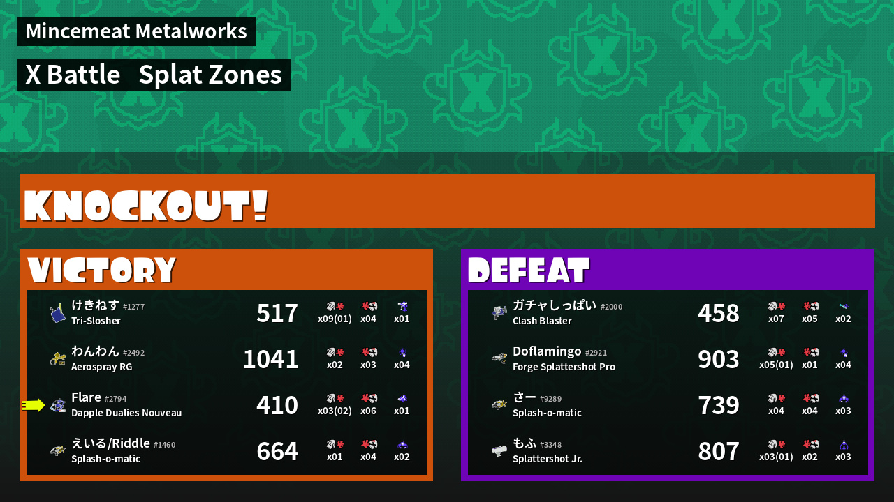 | Mode | Splat Zones - X Battle | ||