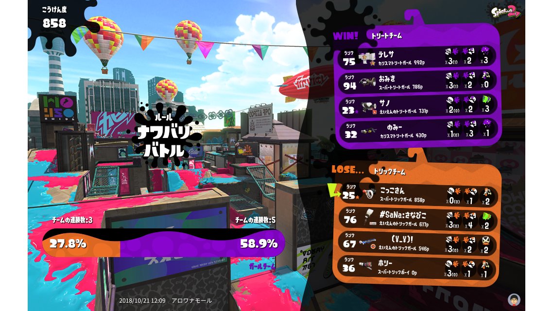 | Splatfest Title | トリック Defender 181 → トリック Defender 201 | ||||||||||||||||||||||||||||||||||