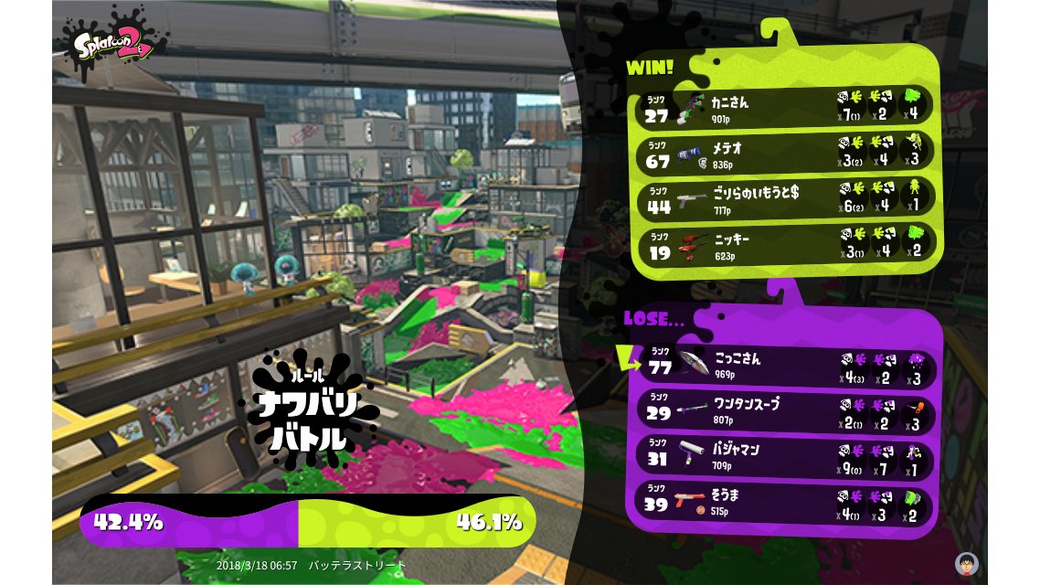 | Mode | Turf War - Regular Battle | |||||||||||||||||||||||||||||||