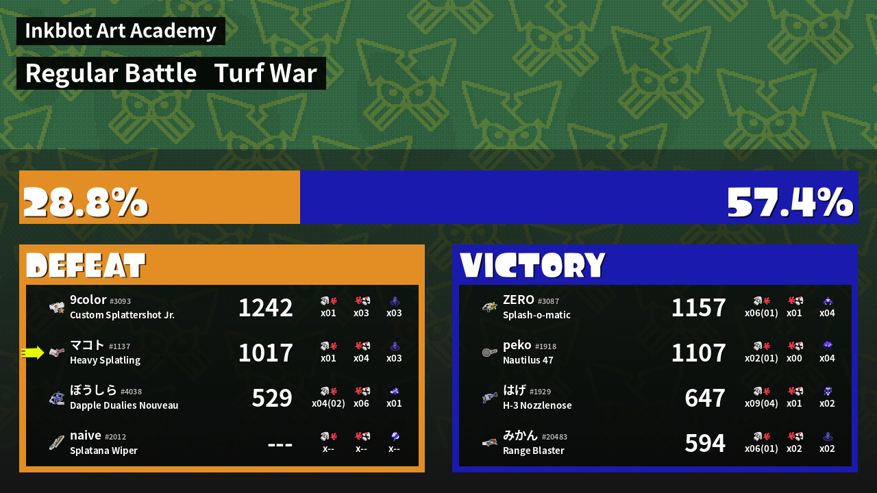 Results of マコト's Battle