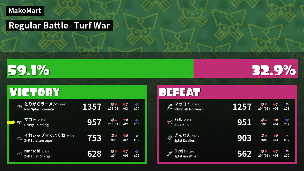 Results of マコト's Battle