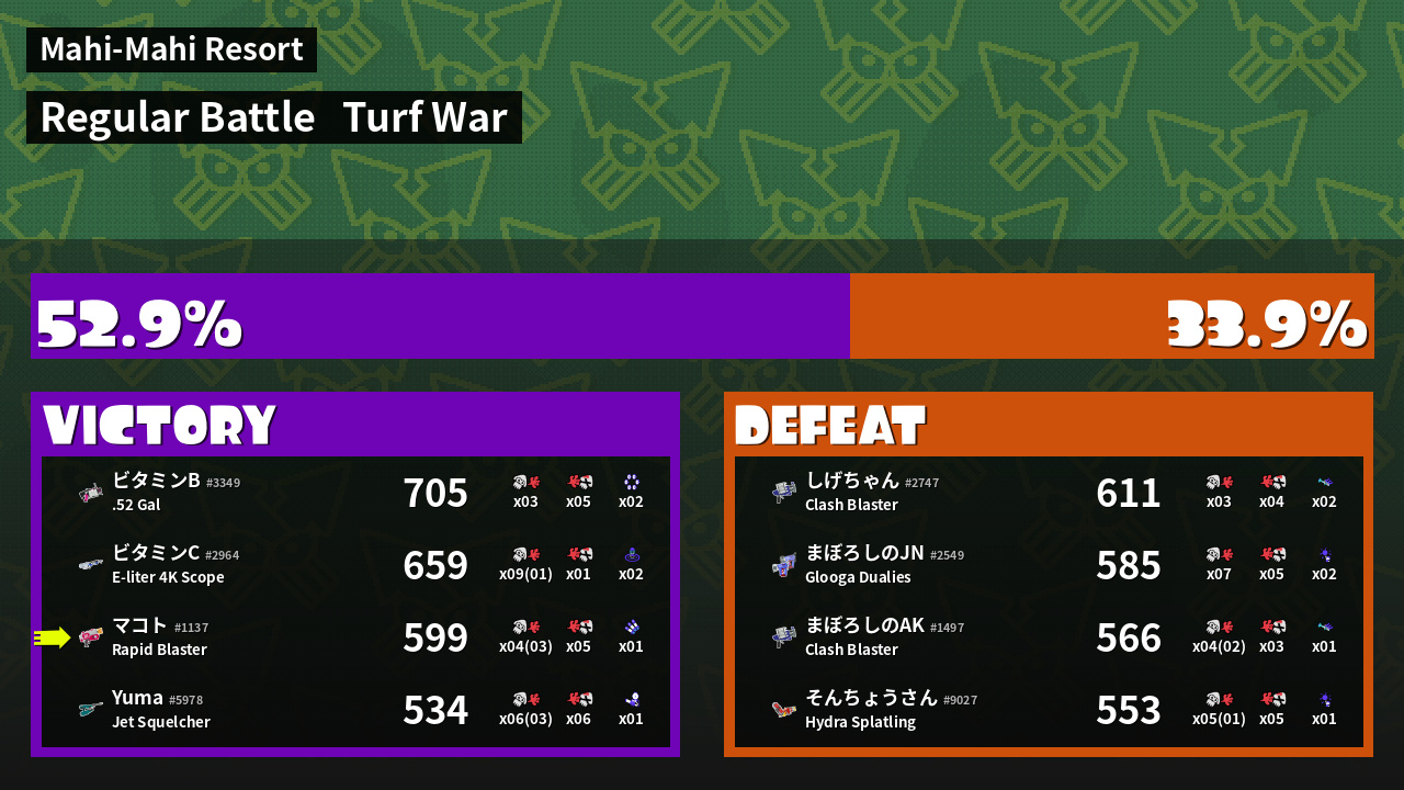 Results of マコト's Battle