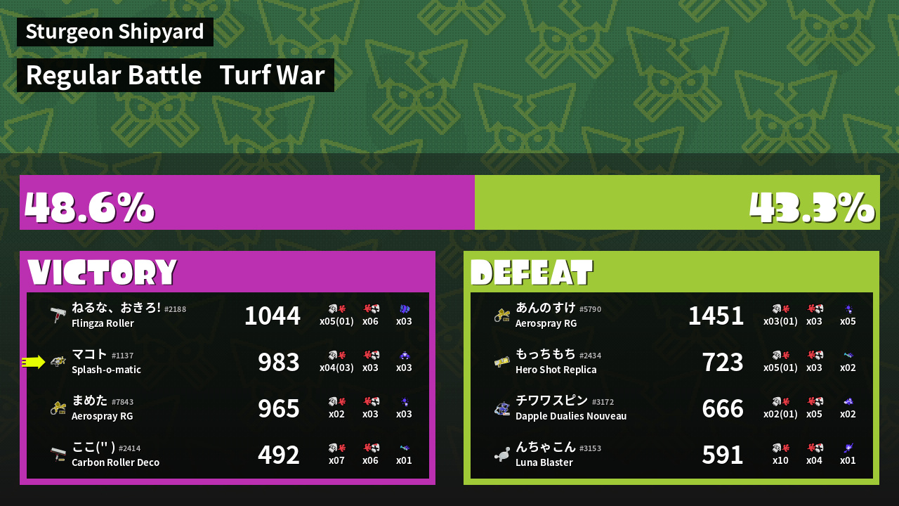 Results of マコト's Battle