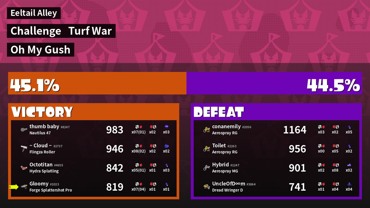 | Medals | #1 Splat Assister #1 Ink Consumer #2 Overall Splatter | ||