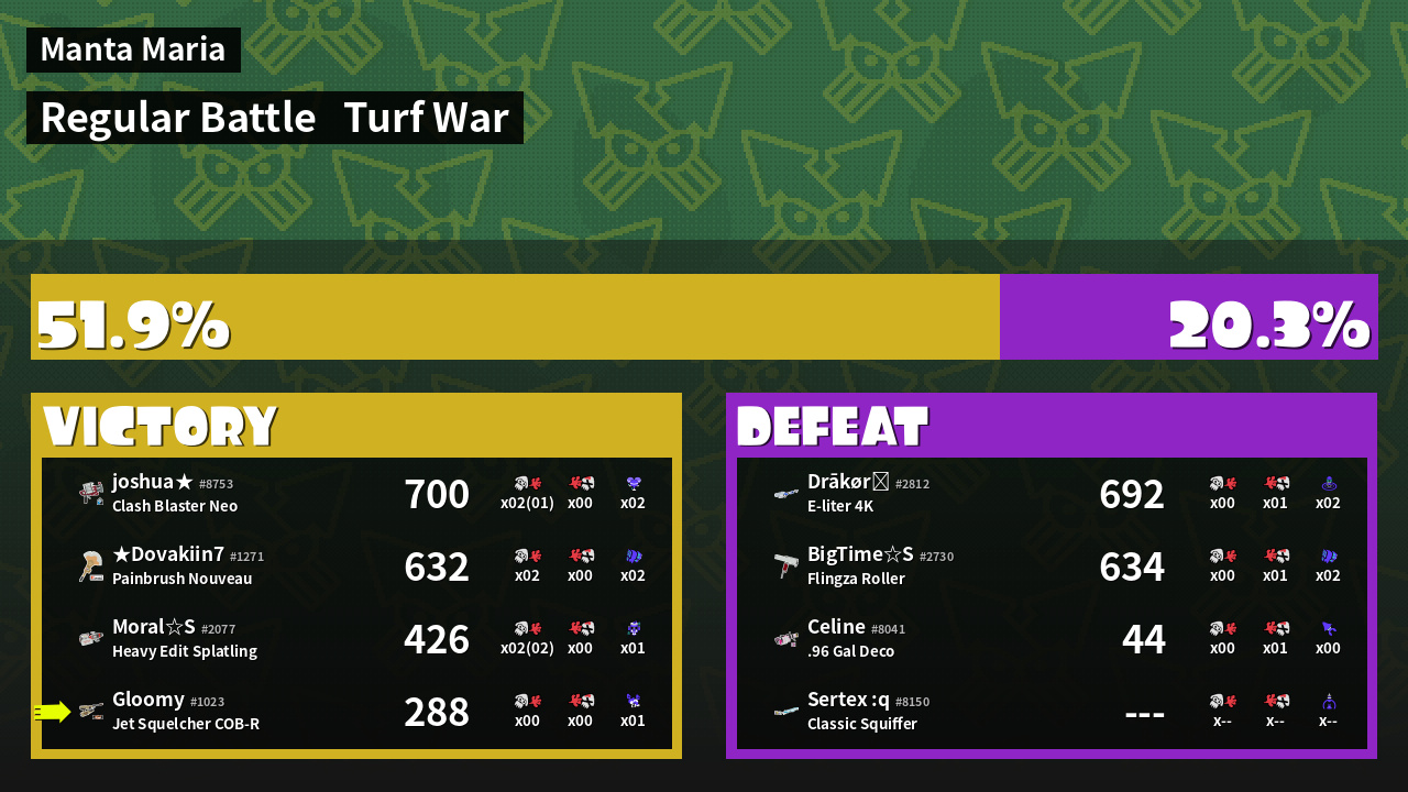 | Mode | Turf War - Regular Battle | ||