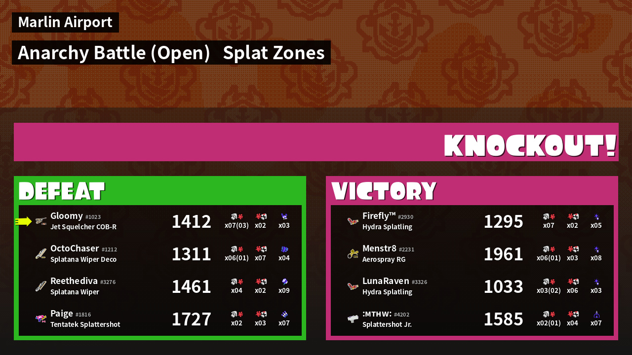 | Mode | Splat Zones - Anarchy Battle (Open) | ||