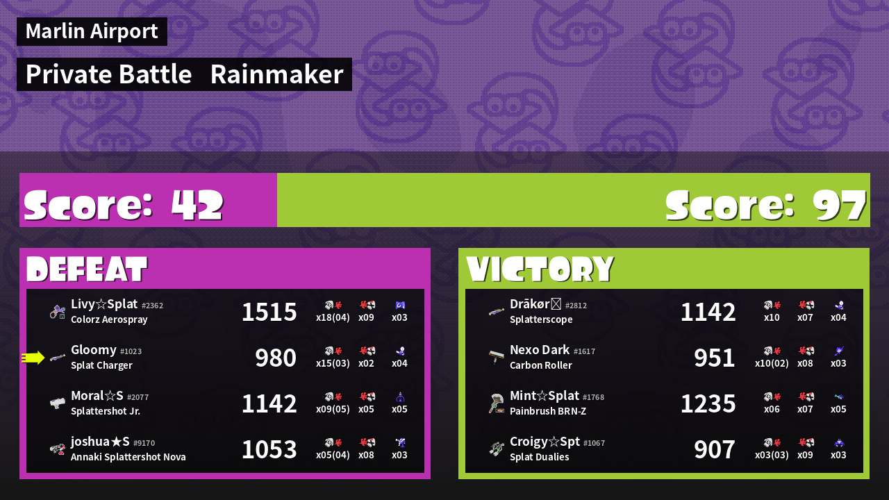 | Weapon | Splat Charger ( Splat Bomb / Ink Vac) | ||
