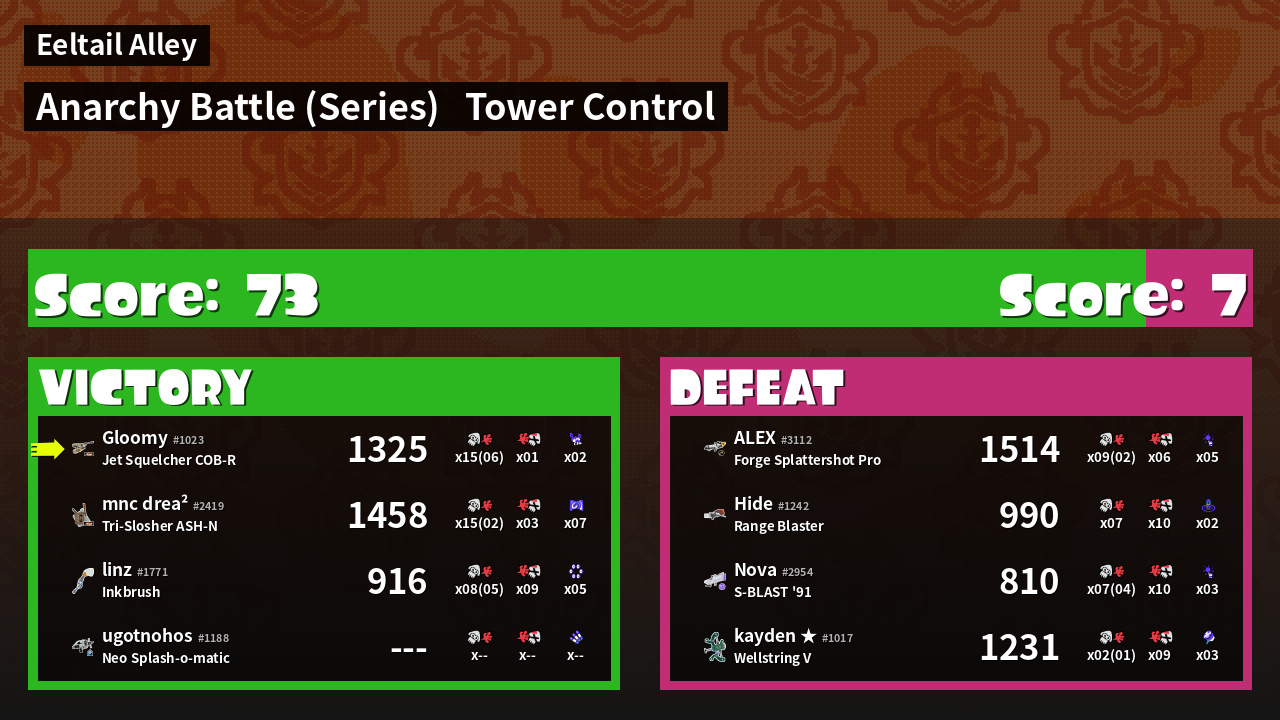 | Medals | #1 Overall Splatter #1 Popular Target #1 Super Jump Spot | ||