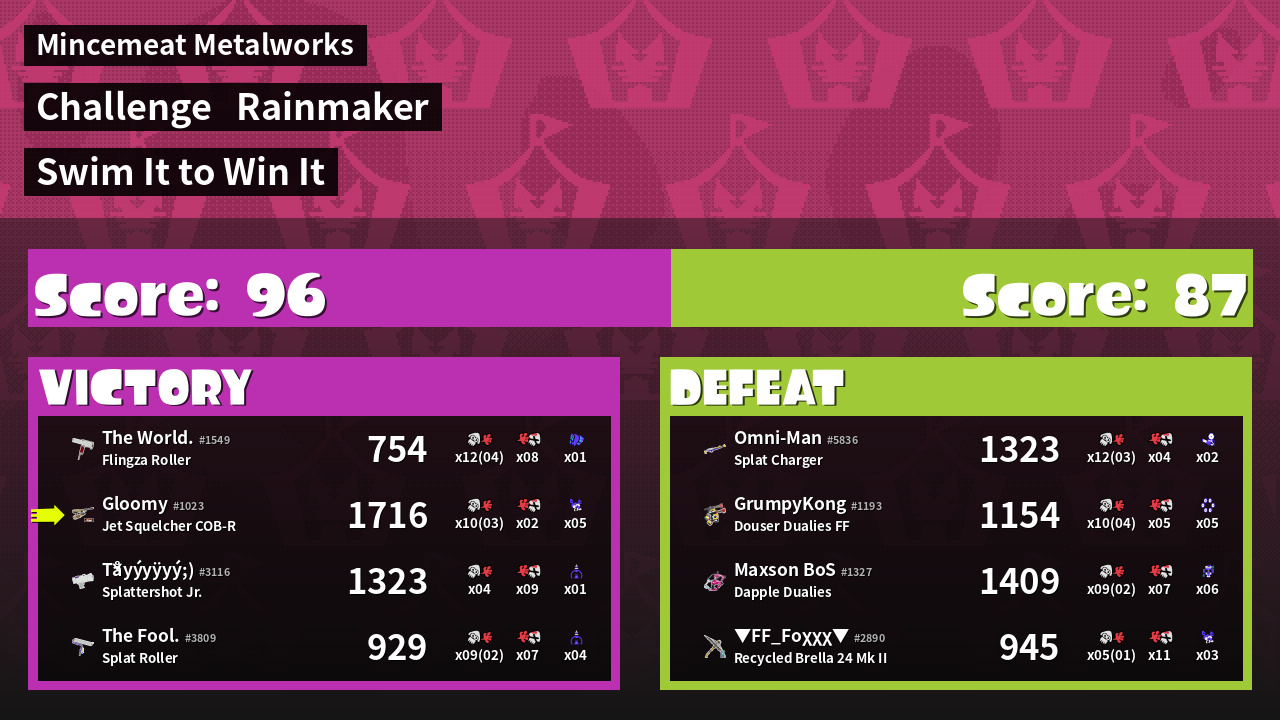 | Weapon | Jet Squelcher COB-R ( Burst Bomb / Triple Splashdown) | ||