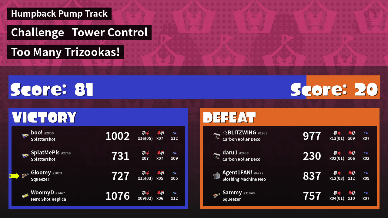 | Challenge | Too Many Trizookas! A high-powered Trizooka battle! | ||