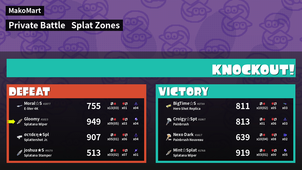 | Mode | Splat Zones - Private Battle | ||