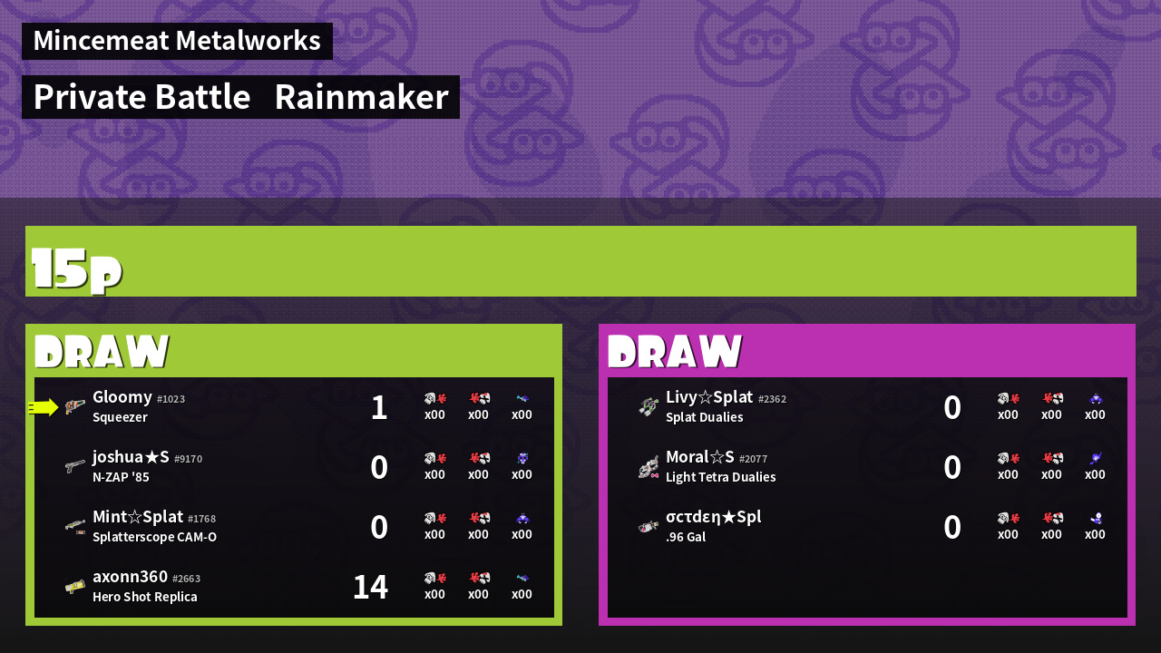 | Weapon | Squeezer ( Splash Wall / Trizooka) | ||
