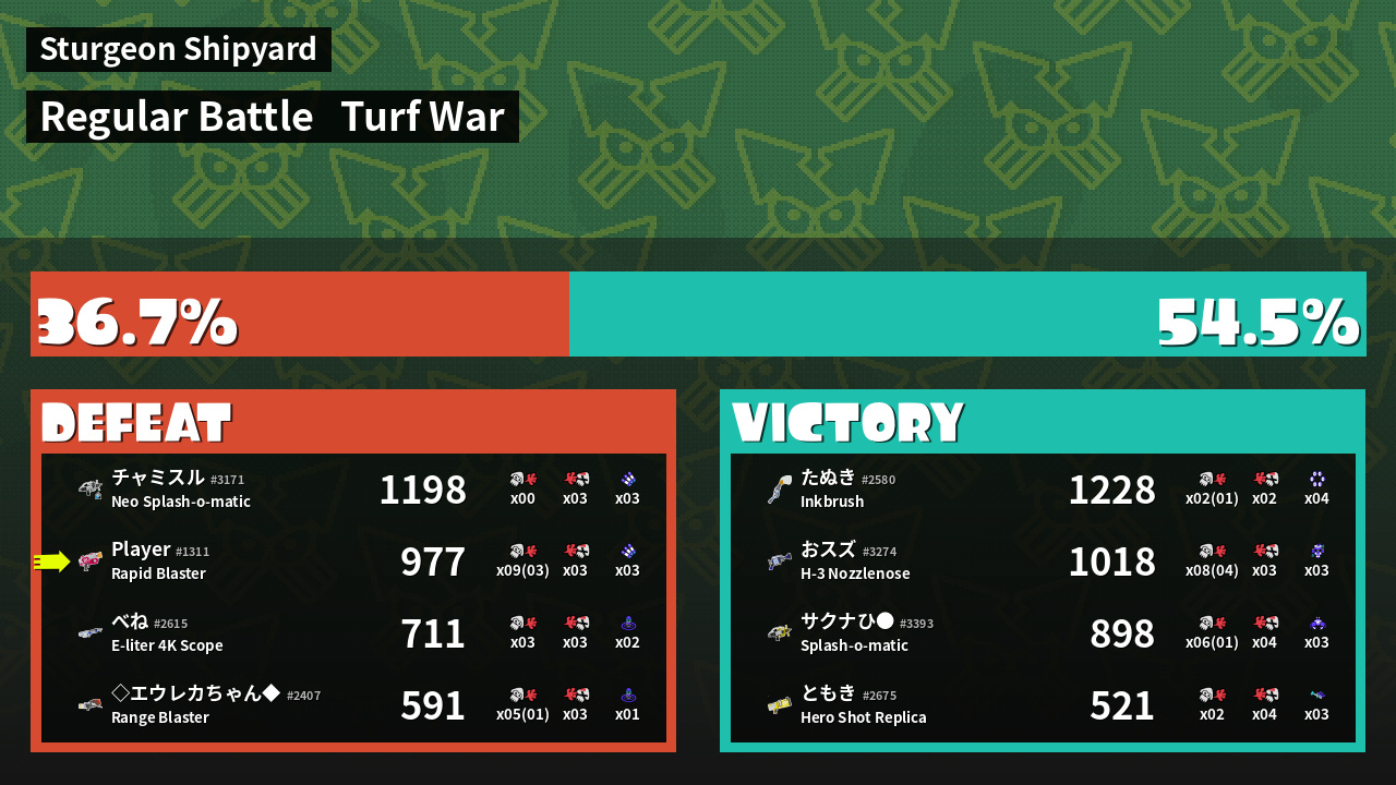 Results of saveSplatBalls's Battle