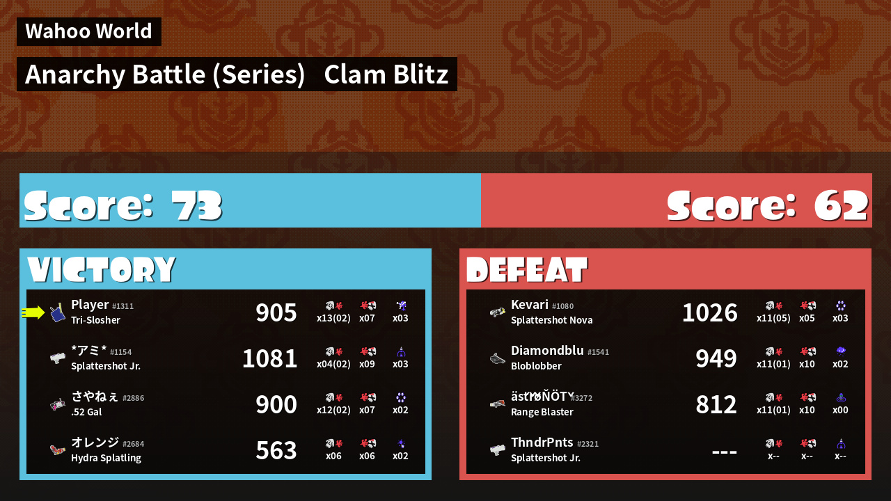 Kills / Deaths | 11 + 2 / 7 > Kill Ratio: 1.57 | ||