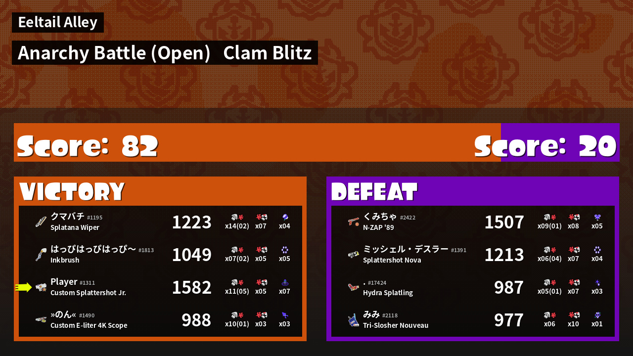 | Mode | Clam Blitz - Anarchy Battle (Open) | ||