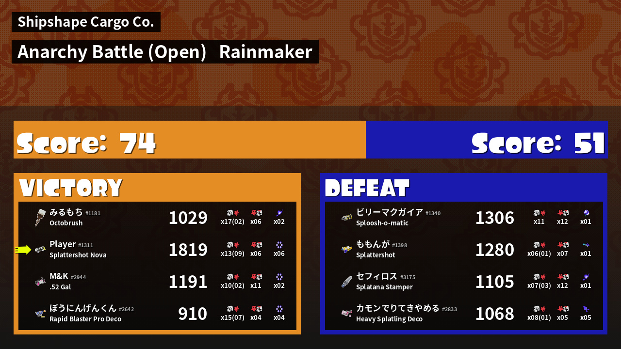 Results of saveSplatBalls's Battle