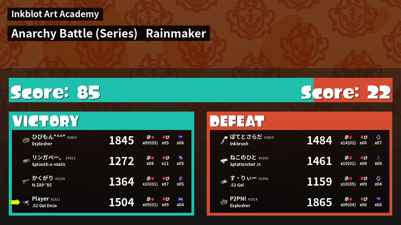 | Weapon | .52 Gal Deco ( Curling Bomb / Splattercolor Screen) | ||
