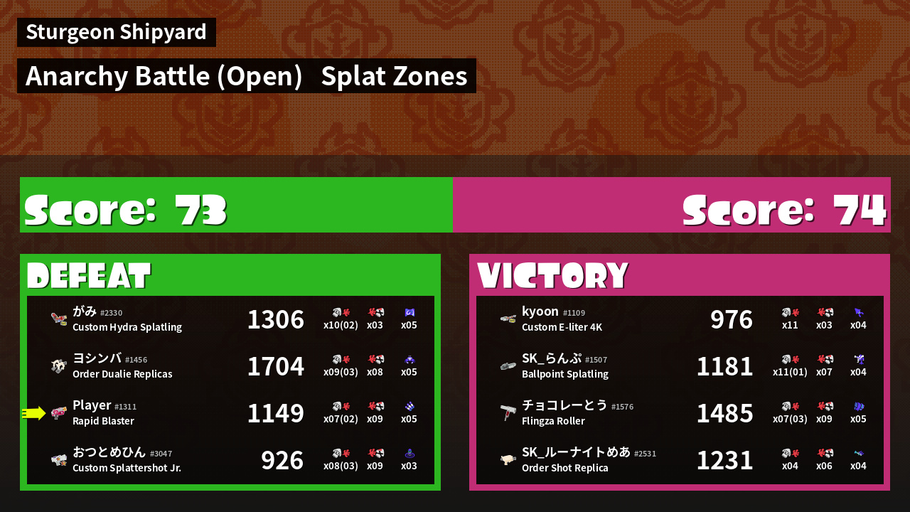 | Mode | Splat Zones - Anarchy Battle (Open) | ||