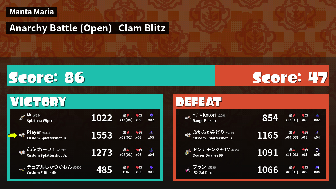 | Mode | Clam Blitz - Anarchy Battle (Open) | ||